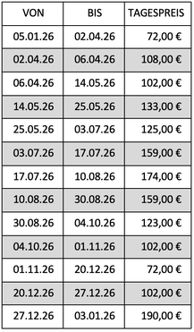 - Buchungsgebühr: 19 € (entfällt bei Anfrage über diese Website)